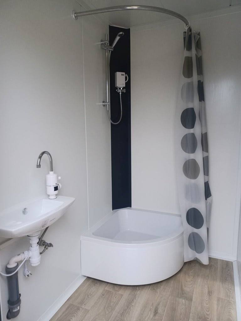 Nuovo container sanitario con doccia e toilette – Completamente equipaggiato con impianti idrici ed elettrici. Ideale per cantieri, eventi e aree pubbliche.
